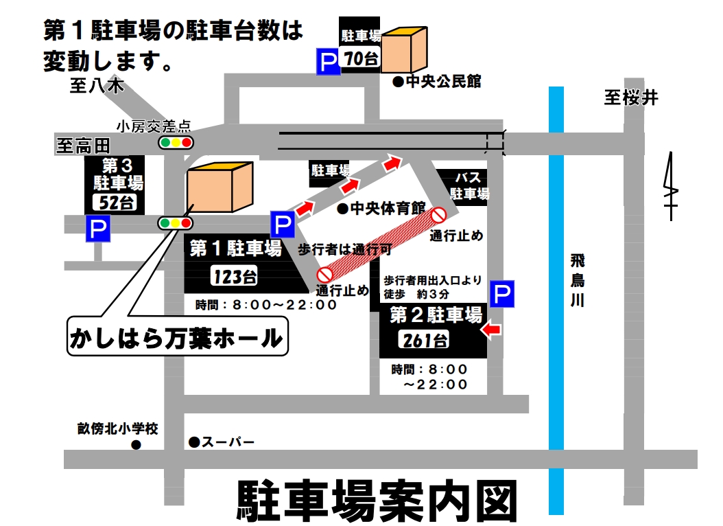 なお、かしはら万葉ホール、橿原市立こども科学館、橿原市立図書館は開館しております。