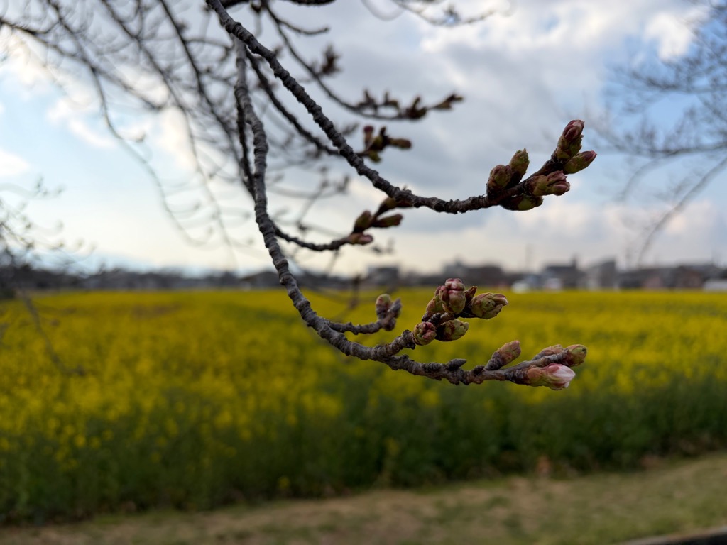桜はまだつぼみの状態ですが、もう少しで開花しそうです。