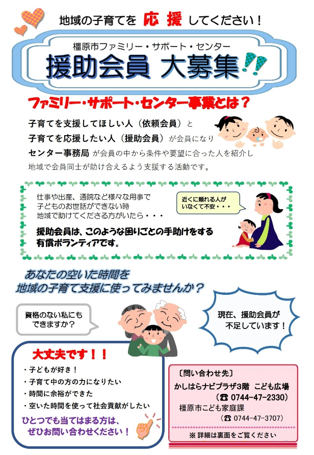橿原市ファミリー・サポート・センター会員募集 (PDFファイル: 948.4KB)