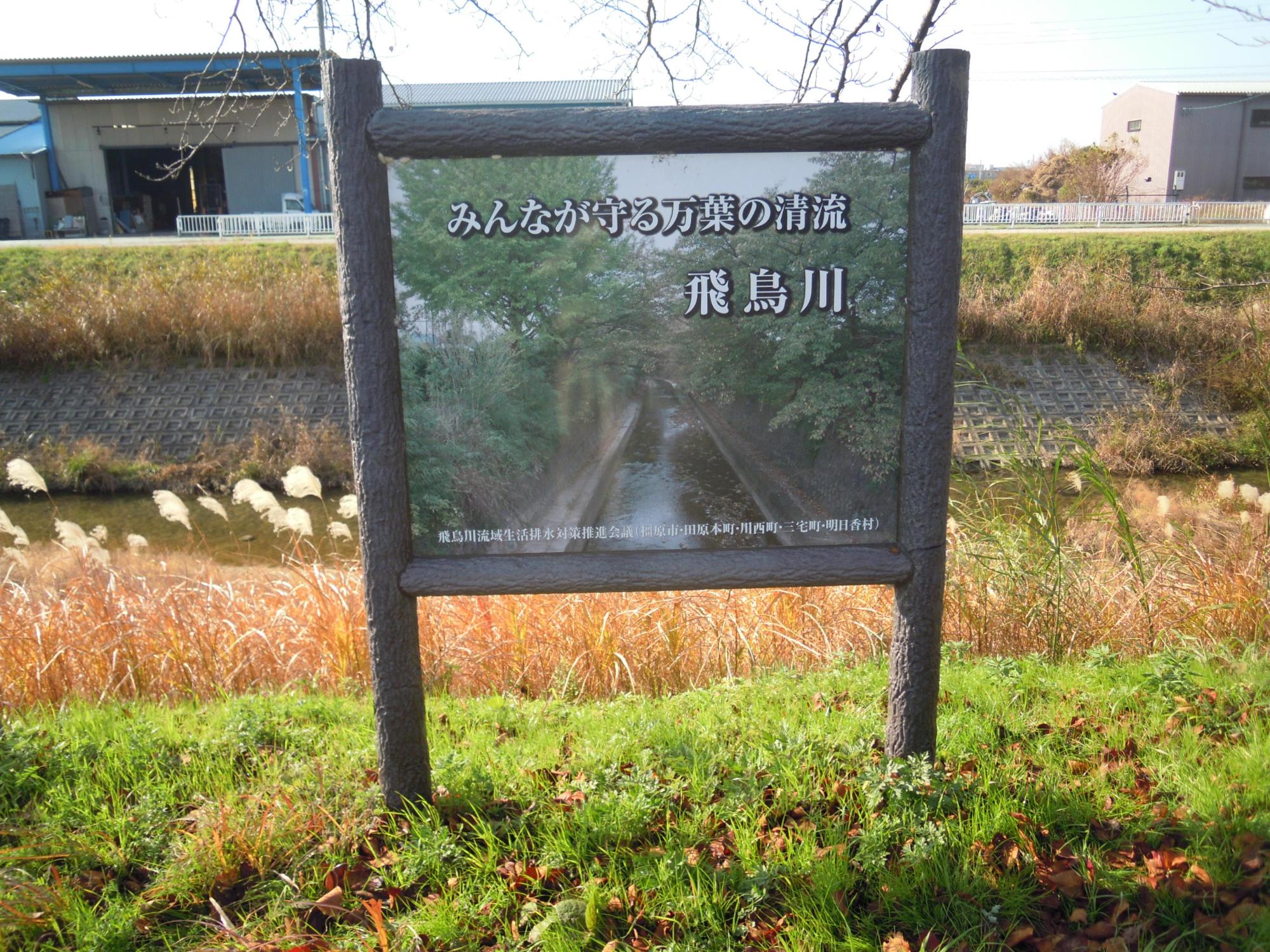 飛鳥川の水質改善啓発用の看板