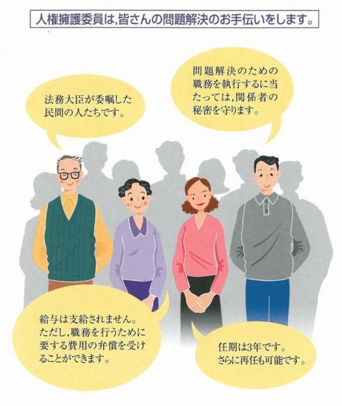 人権擁護委員は、皆さんの問題解決のお手伝いをします。