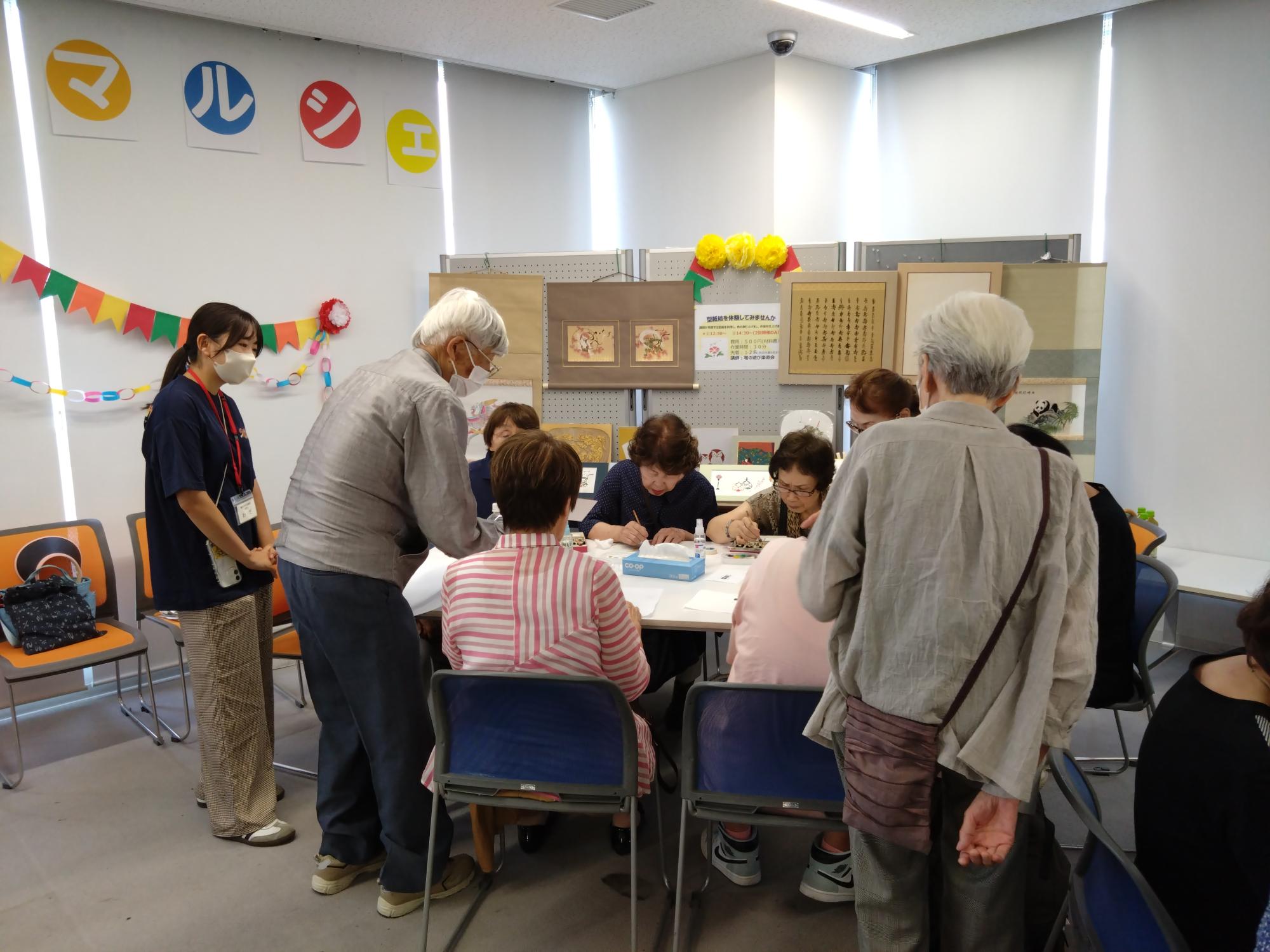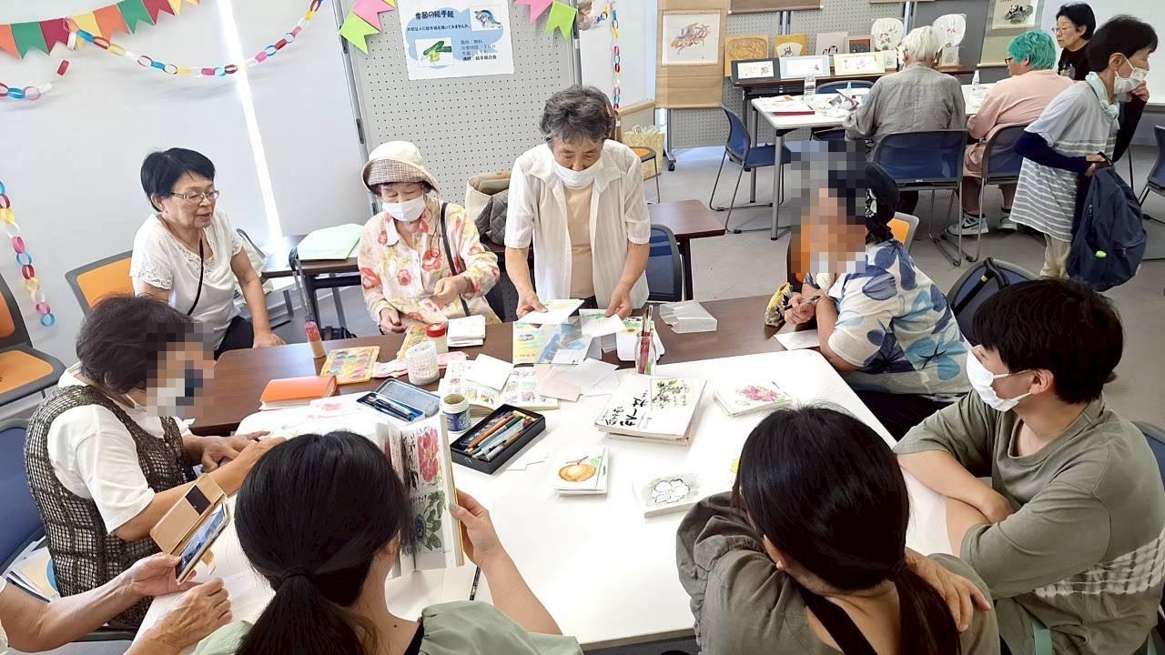 絵手紙の会は市民活動交流広場で、絵手紙の楽しさを多くの方に伝えるために毎週火曜日に活動しています。いつも楽しく会話されながら絵手紙の技術の研鑽に励んでおられます。