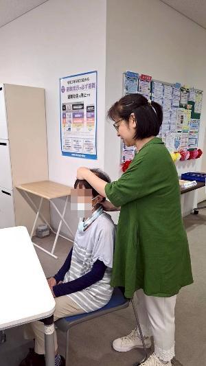 参加者は、村上氏からマッサージのデモンストレーションを受けていました。