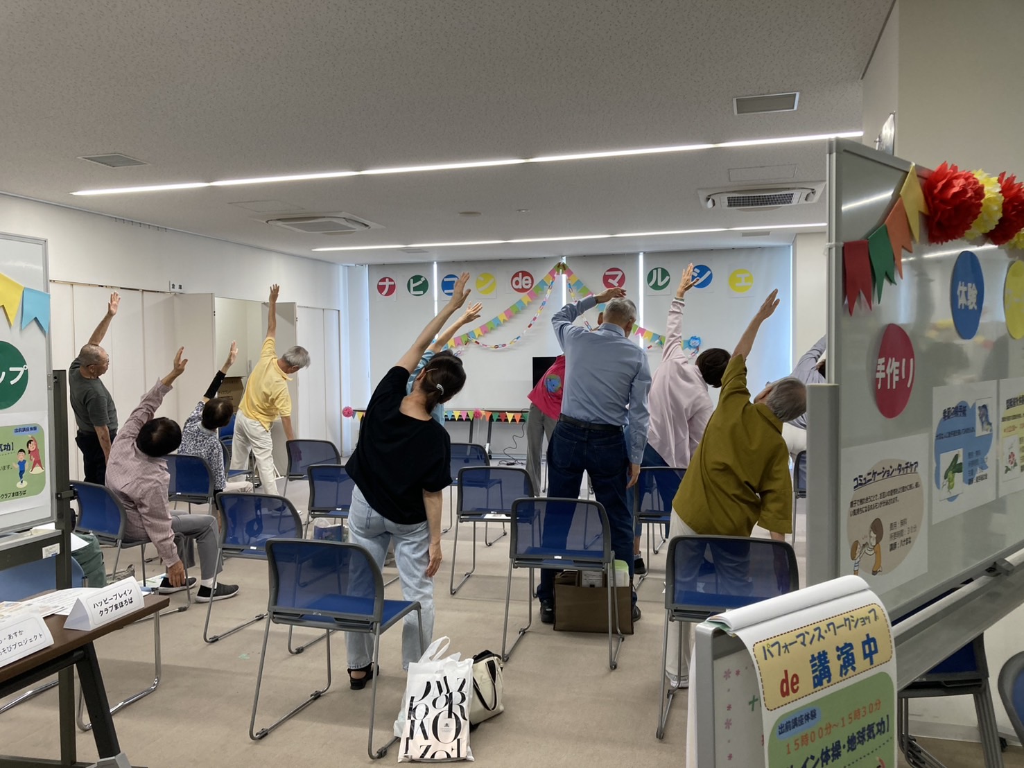 ブレイン体操は、瞑想、気功で気血循環が良くなり腸活、脳活にもつながるそうです。地球をイメージした体操で参加者はゆったりと気持ちよさそうに身体を動かしていました。