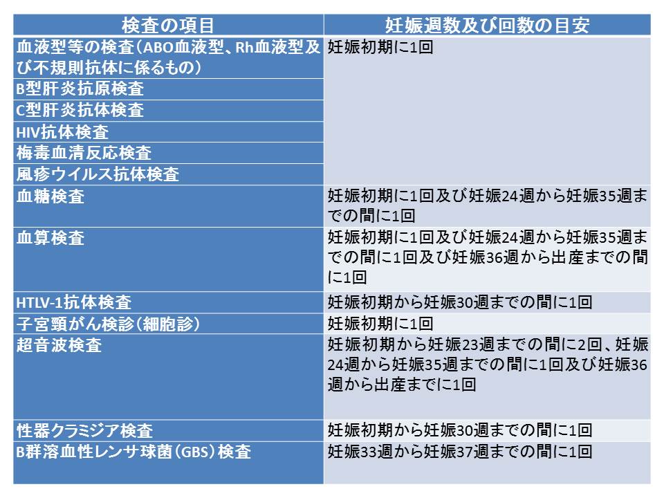 - その他、妊娠週数及び回数を目安として行うもの(下記の表参照)