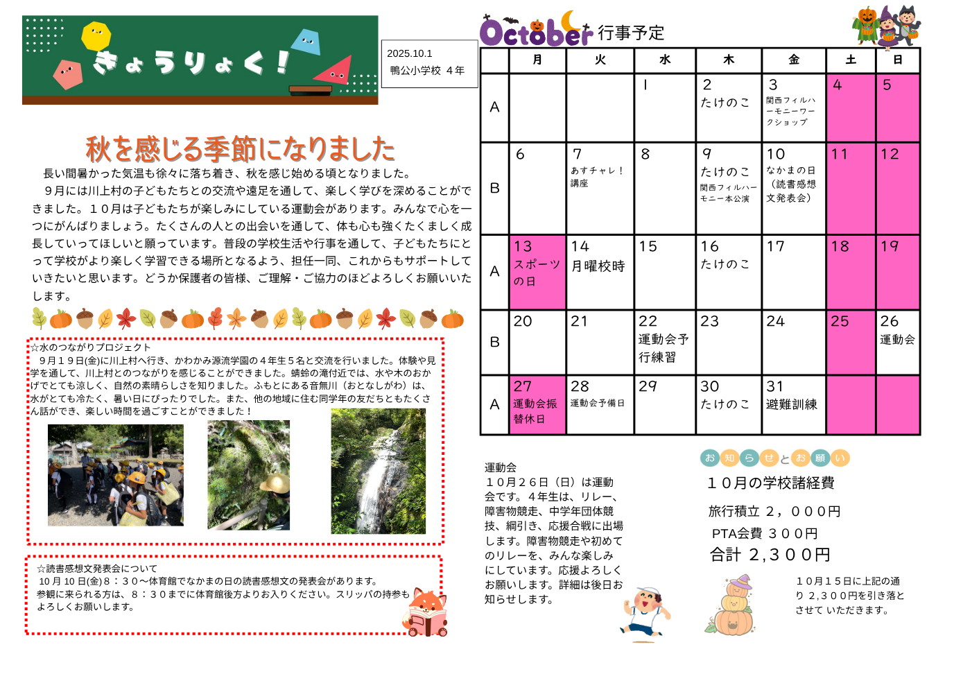 それぞれの学年だより【10月号】を掲載しています。