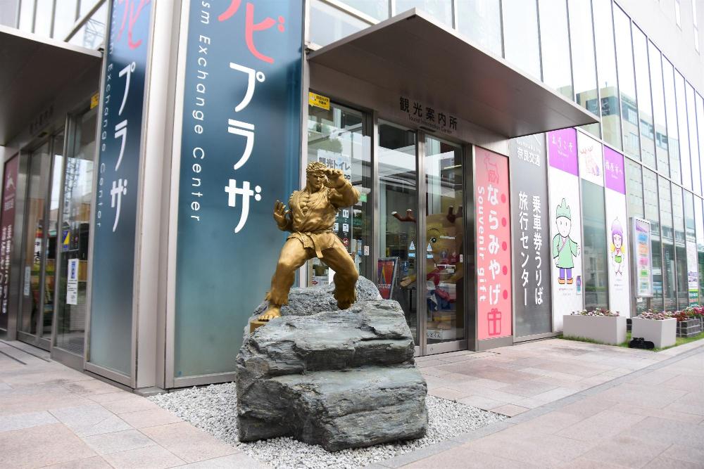 かしはらナビプラザ前に、世界的人気対戦型格闘ゲーム『ストリートファイター』のキャラクター『リュウ』の銅像を設置しました。
