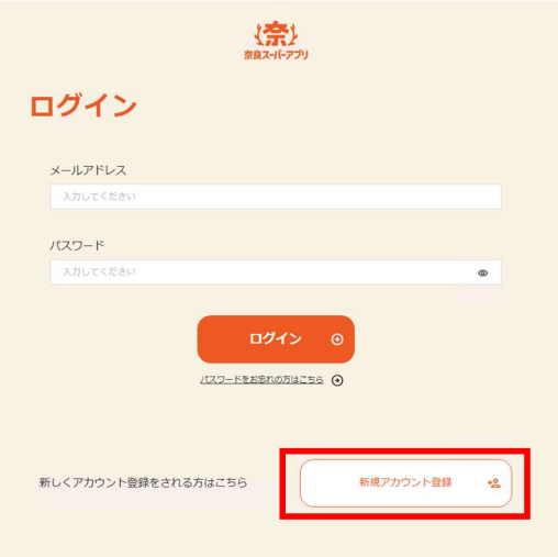 1.奈良スーパーアプリのアカウントを作成(未作成の方のみ)