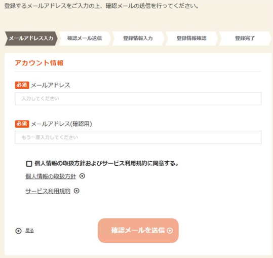 (2)使用するメールアドレスを入力し、確認メールを送信します。