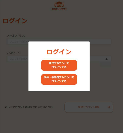 ※奈良スーパーアプリのアカウントの作成にはメールアドレスが必要です。