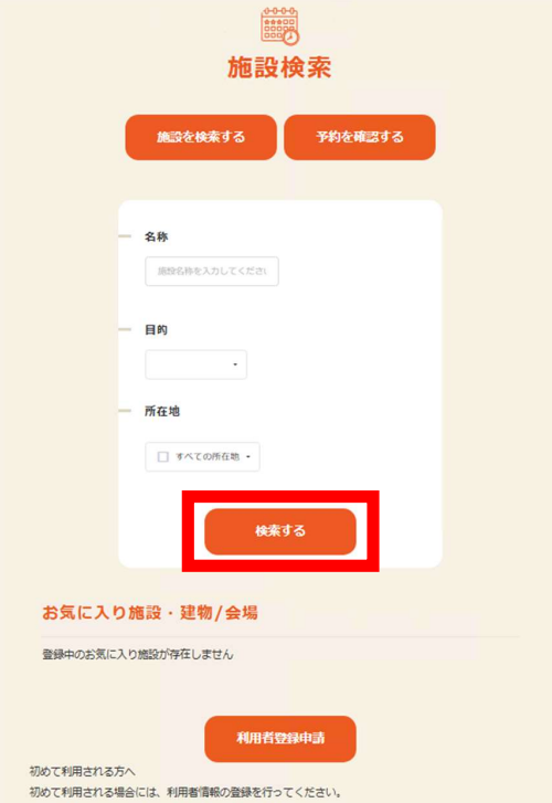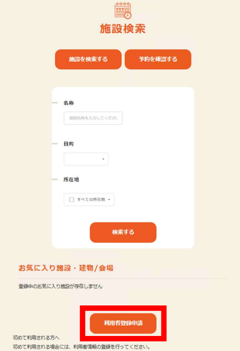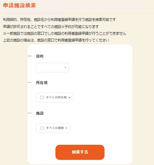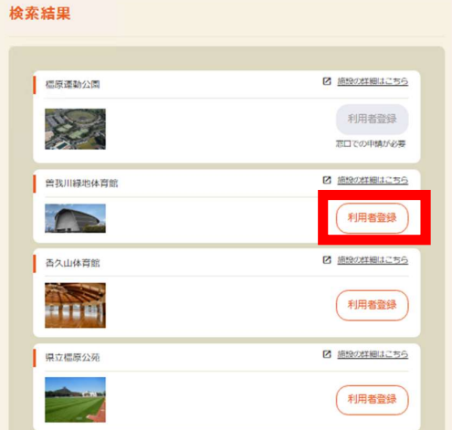 (4)検索結果から申請する施設の「利用者登録」を押す。