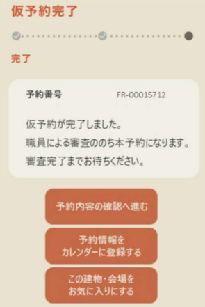 申し込みが完了すると、「仮予約」画面が表示されます。