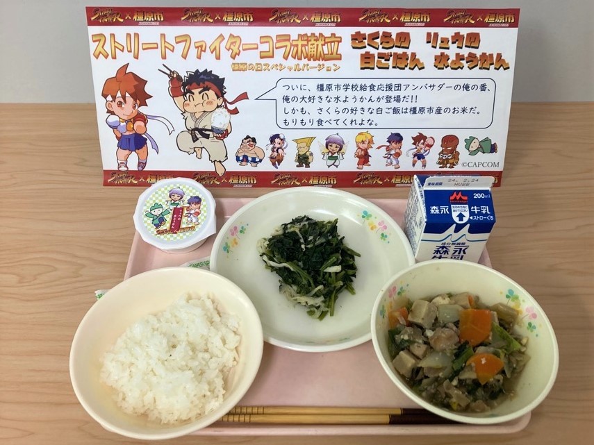 - 令和5年2月1日の「橿原の日の給食」では、メンチカツとみかんゼリーに登場。ダルシムの好物であるカレーと合わせて、メンチカツカレーを提供しました。