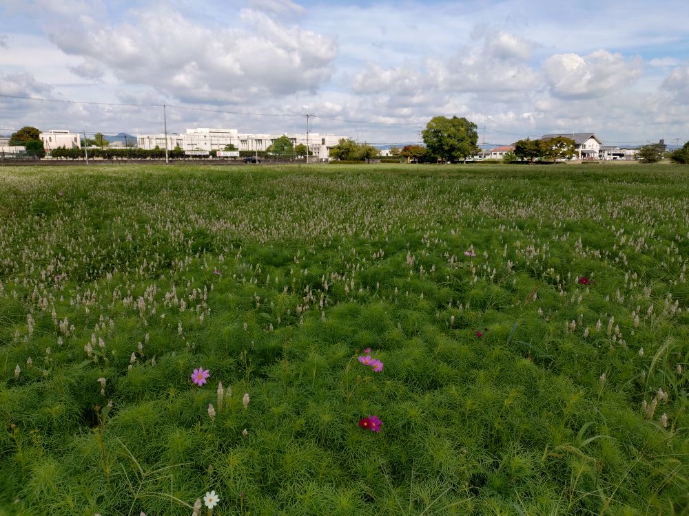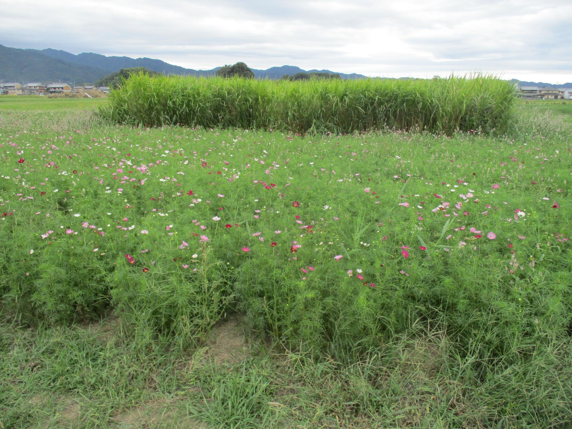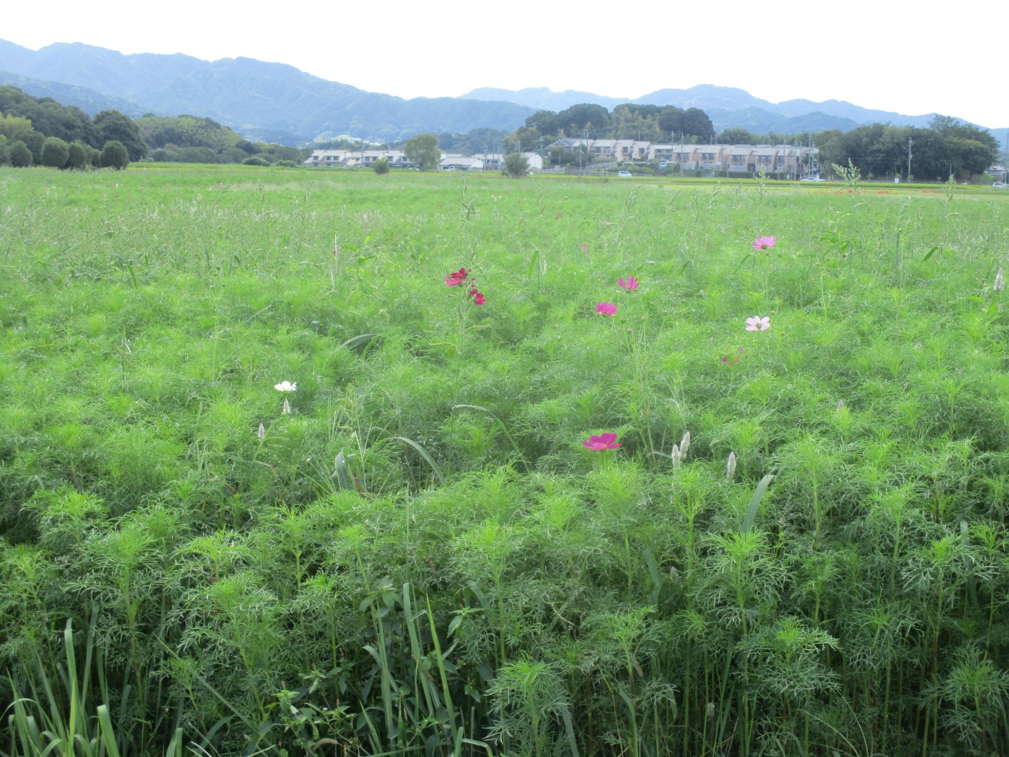 北側エリアでは、ここ数日の暑さの影響か、つぼみの数は多いものの開花しているコスモスの数はあまり増えていません。