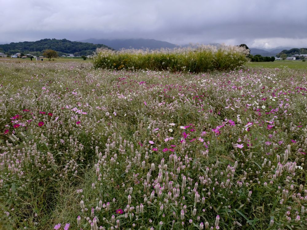 南側エリアでも同様に、散っている様子や倒れているコスモスが目立っています。
