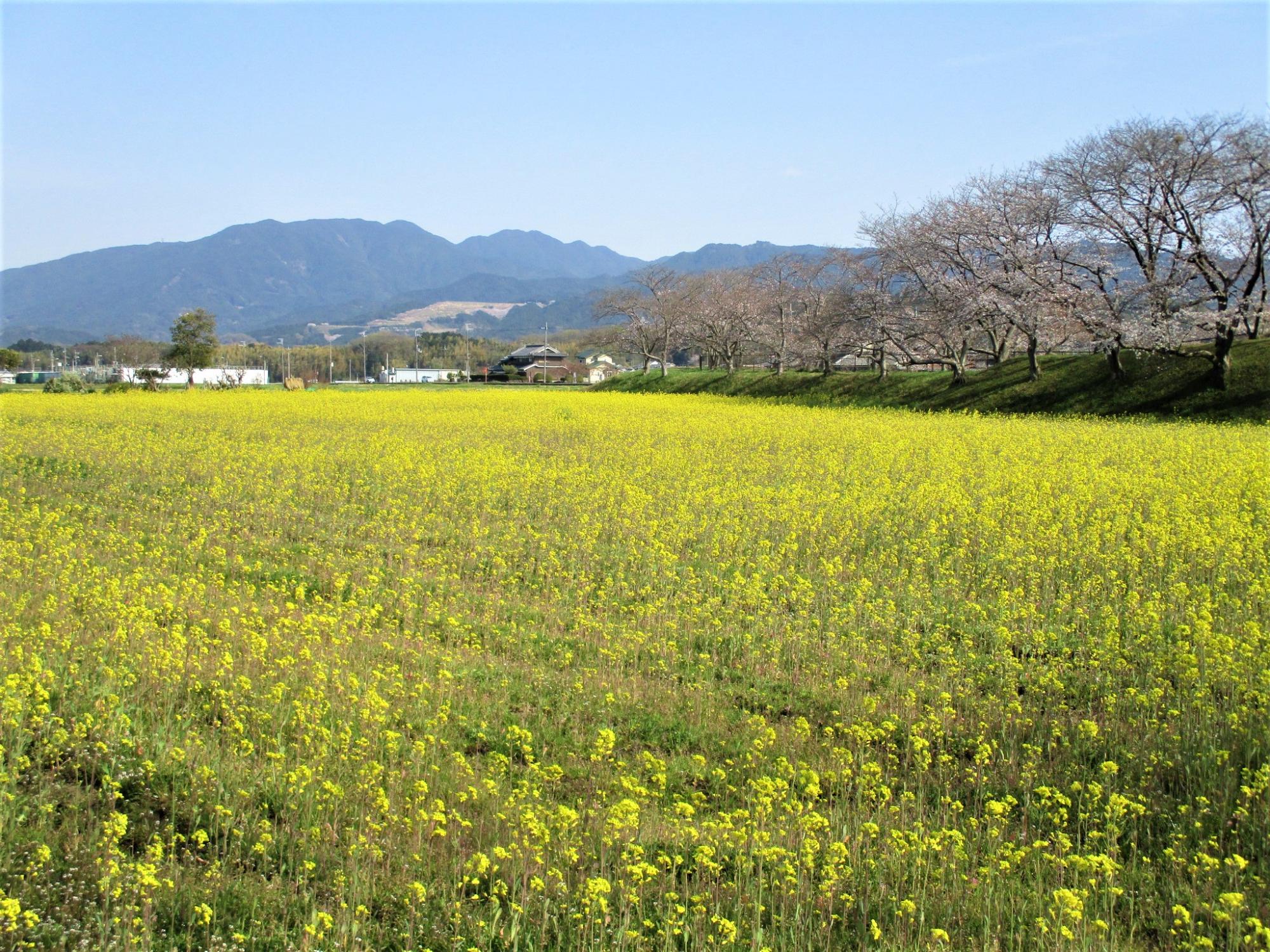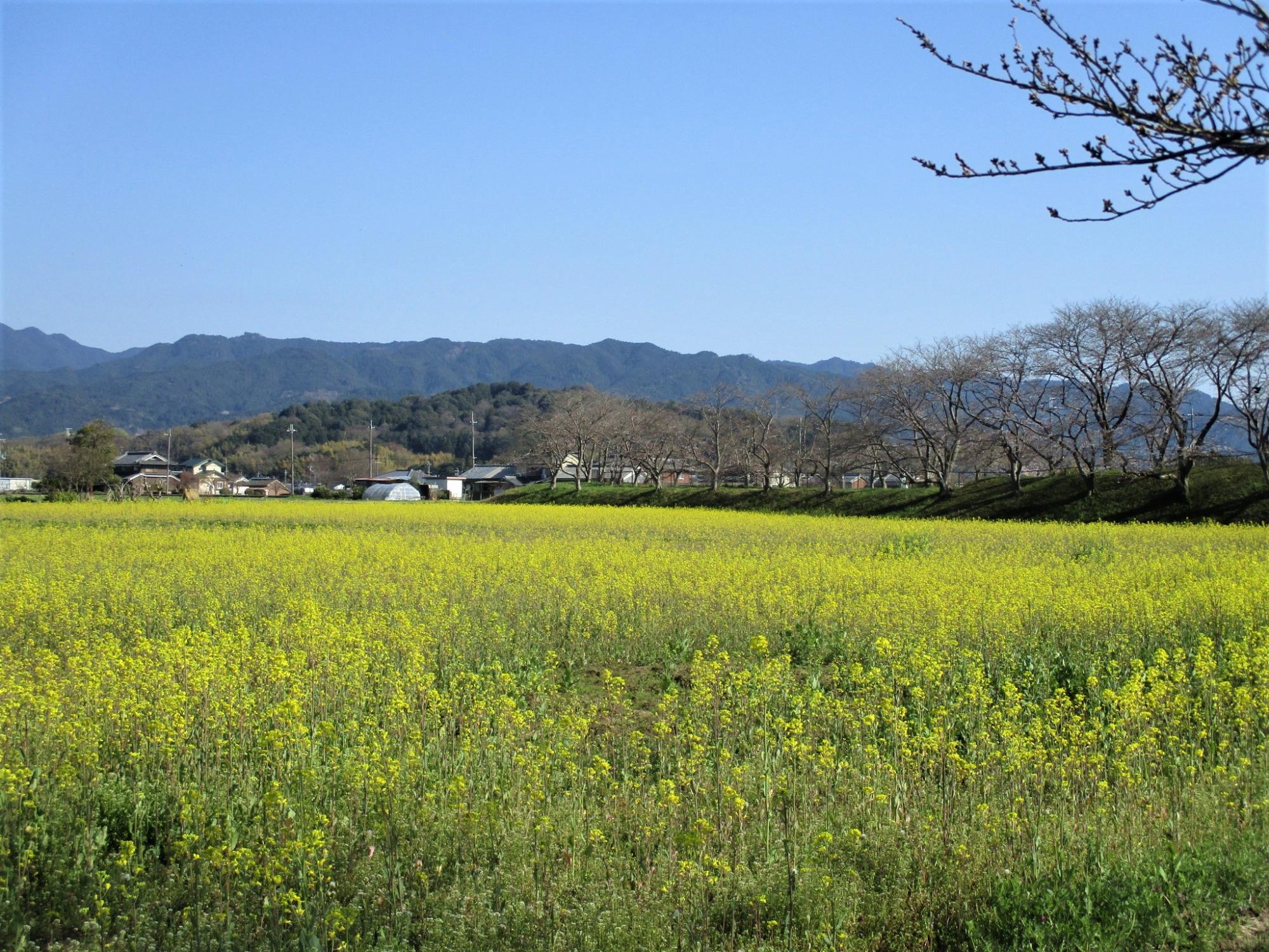 西側の菜の花は満開、東側は5分~6分咲きです。