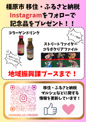 - 地域振興課ブース・・・小学生以下へのわたあめの無料配布や、人気のふるさと納税返礼品・「JR×橿原市×ストリートファイター」特製クリアファイルのプレゼント企画を実施します。