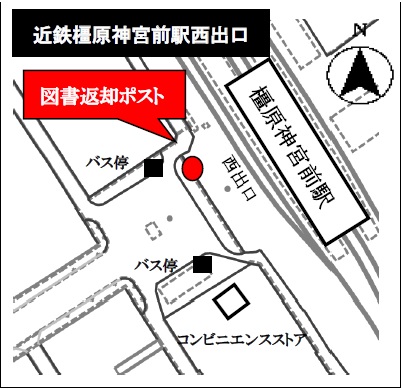 橿原市立図書館で借りた本や雑誌は、市内12ヶ所にある図書返却ポストを利用して返却することができます。