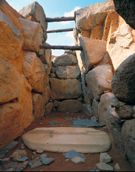 玄門部の床に玄室と羨道を間仕切る閾石が置かれている。 |