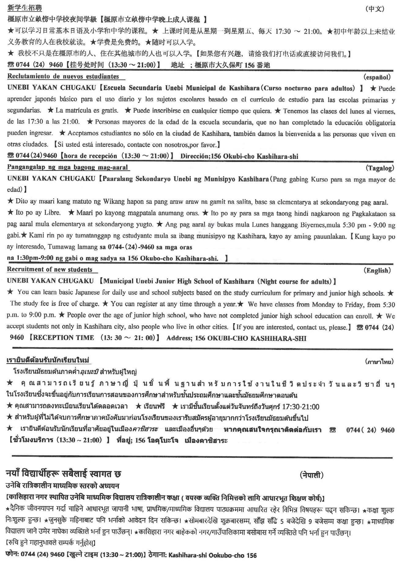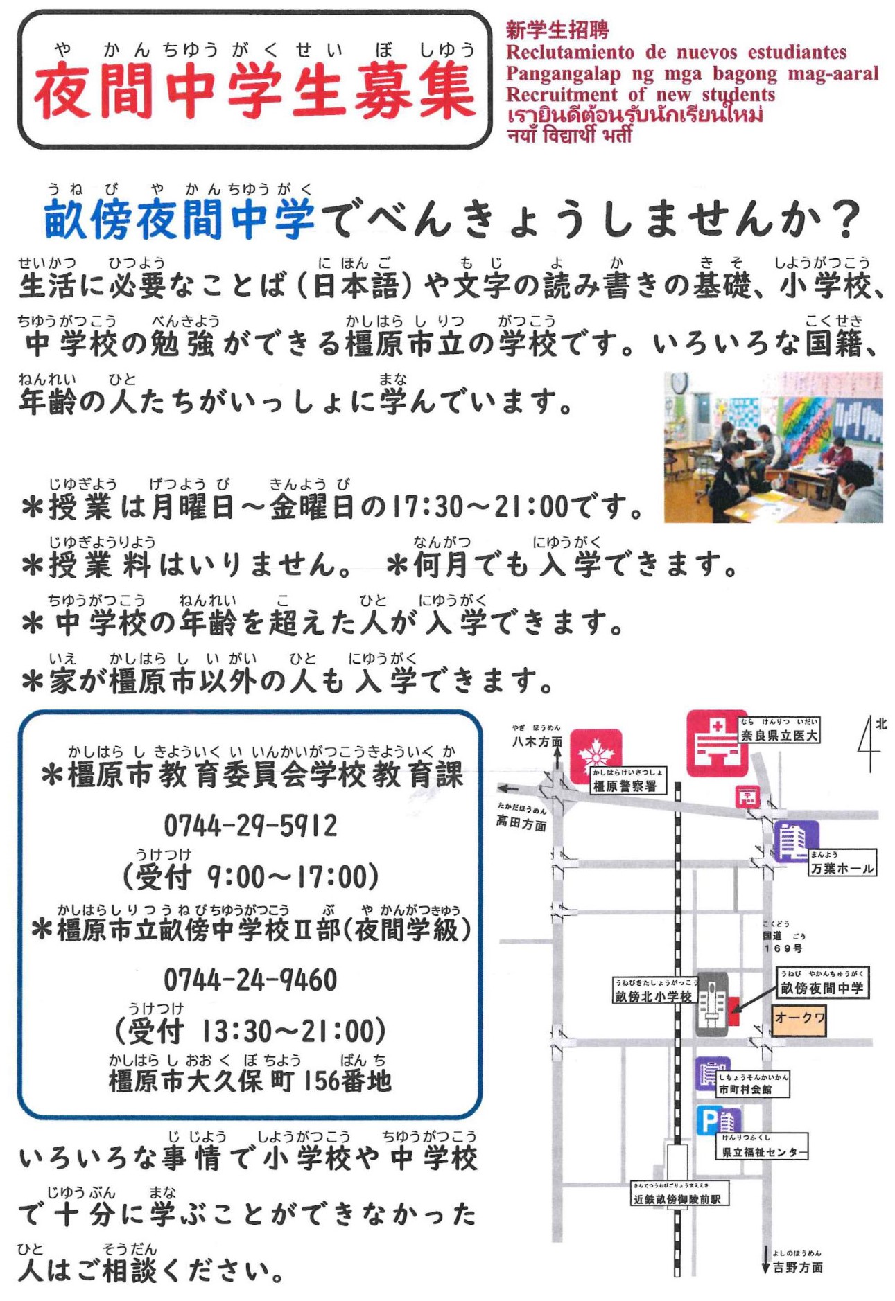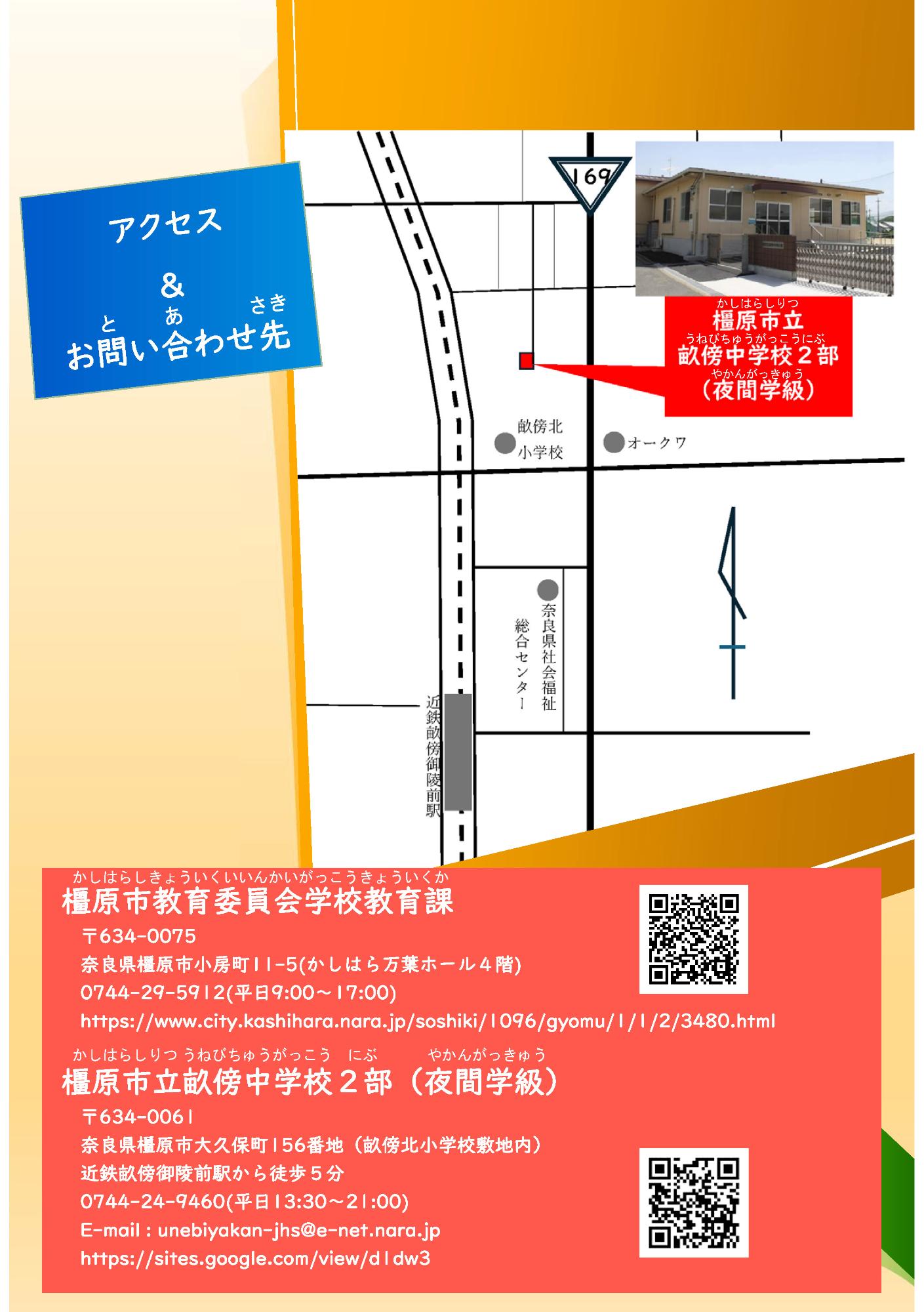 畝傍中学校二部(うねびちゅうがっこうにぶ)までご連絡(れんらく)ください。